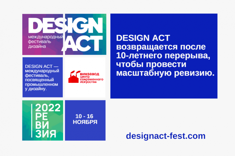 Промышленный дизайн — это предметный мир вокруг нас. В 2022 году DESIGN ACT возвращается после 10-летнего перерыва, чтобы провести масштабную ревизию и объединить на одной площадке дизайнеров, производителей и самую широкую аудиторию.